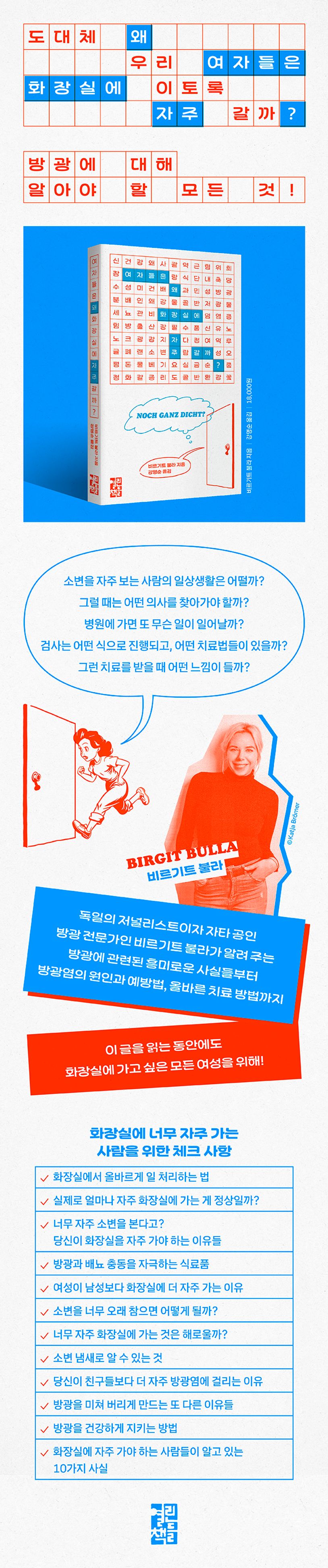 물의행진,소변이배출되기까지화장실에서올바르게일처리하는법왜우리는갈증을느끼면뭔가를마셔야할까?실제로얼마나자주화장실에가는게정상일까?너무자주소변을본다고?당신이화장실을자주가야하는이유들방광과배뇨충동을자극하는식료품방광을더천천히채우는음료여성이남성보다화장실에더자주가는이유어린아이가요의를통제하는법을배우는방식맙소사,방광이실제로터질수있을까?그건방광파열이다배뇨수치심또는공중화장실공포증:타인앞에서화장실에가는것에대한공포소변을너무오래참으면어떻게될까?너무자주화장실에가는것은해로울까?소변의성분소변미인아스파라거스소변소변냄새로알수있는것임신테스트기의작동원리와소변에서더알아낼수있는것다양한소변색방광결석,왜방광은돌을안좋아할까?