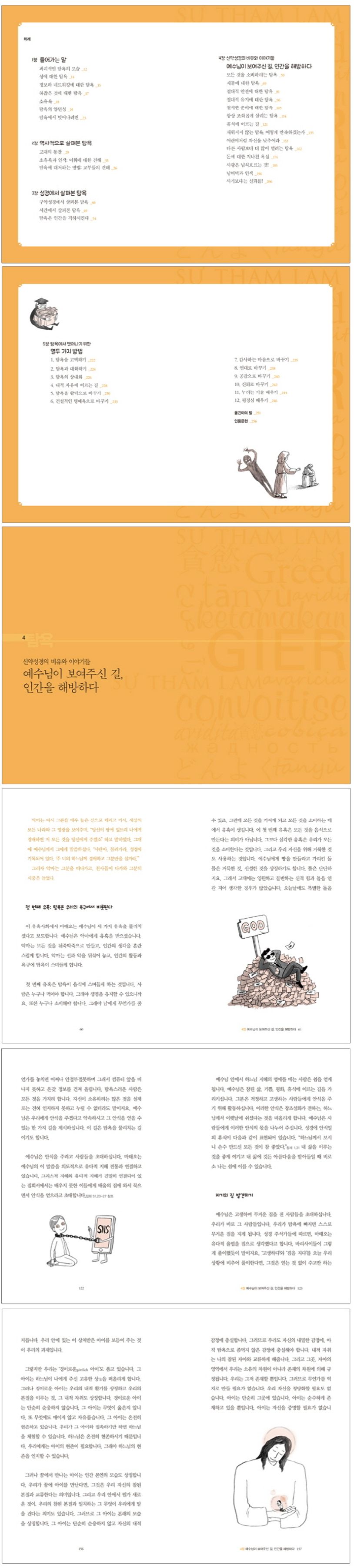 1장들어가는말파괴적인탐욕의모습/성에대한탐욕/정보와네트워킹에대한탐욕/하찮은것에대한탐욕/소유욕/탐욕의양면성/탐욕에서벗어나려면2장역사적으로살펴본탐욕고대의통찰/소유욕과인색:어휘에대한견해/탐욕에대처하는방법:교부들의견해3장성경에서살펴본탐욕구약성경에서살펴본탐욕/서간에서살펴본탐욕/탐욕은인간을격하시킨다4장신약성경의비유와이야기들예수님이보여주신길,인간을해방하다모든것을소비하려는탐욕/재물에대한탐욕/절대적안전에대한탐욕/절대적유지에대한탐욕/철저한준비에대한탐욕/항상조화롭게살려는탐욕/휴식에이르는길/채워지지않는탐욕,어떻게만족하겠는가/어린이처럼자신을낮추어라/다른사람보다더많이벌려는탐욕/돈에대한지나친욕심/사랑은넘쳐흐르는것!/낭비벽과인색/사기보다는신뢰를!5장탐욕에서벗어나기위한열두가지방법1.탐욕을고백하기/2.탐욕과대화하기/3.탐욕의상대화/4.내적자유에이르는길/5.탐욕을활력으로바꾸기/6.건설적인명예욕으로바꾸기/7.감사하는마음으로바꾸기/8.연대로바꾸기/9.공감으로바꾸기/10.신뢰로바꾸기/11.누리는기술배우기/12.평정심배우기옮긴이의말/인용문헌