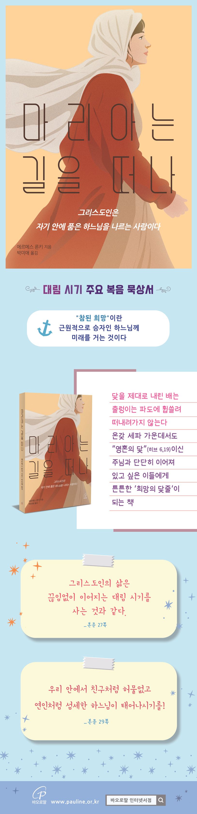 삶의 격랑 속에서도 ‘근원적으로 승자勝者인 하느님께 미래를 거는 것’이 참된 희망임을 일러주며, 나아가 우리 안에 품고 있는 하느님을 나르는 사람이 되자고 초대하는 책.