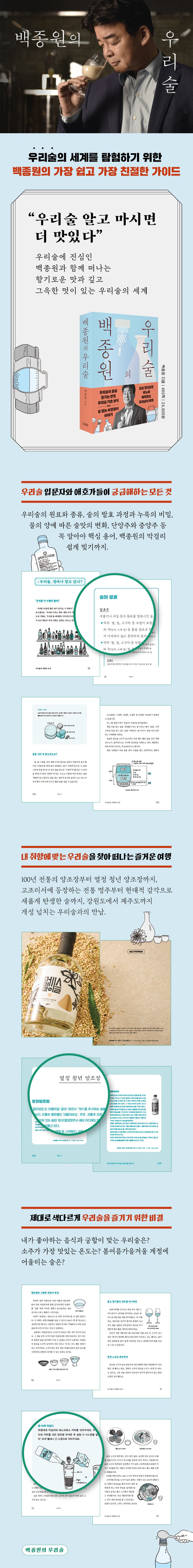 《백종원의 우리술》은 ‘우리술’에 관한 모든 것을 담은 교양서로서 우리술 입문자와 애호가들이라면 반드시 읽어야 할 책이다.