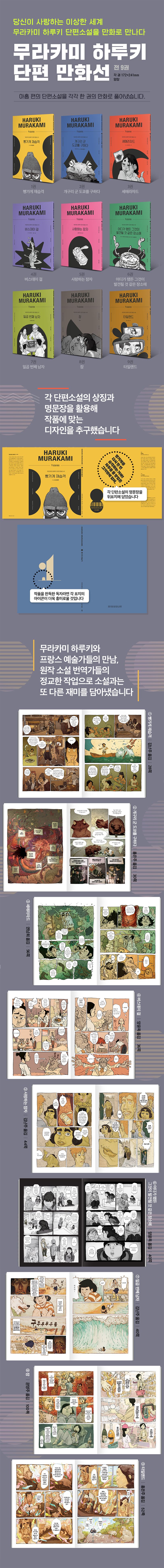 무라카미 하루키 단편소설이 만화로 각색되어 독자들을 만난다. 아홉 편의 단편소설을 각각 한 권의 만화책으로 펴낸 세계 최초 하루키 만화화 프로젝트 《무라카미 하루키 단편 만화선》. 〈빵가게 재습격〉과 같은 초기작부터 〈개구리 군 도쿄를 구하다〉를 거쳐 〈타일랜드〉 〈셰에라자드〉 등 근작까지, 프랑스 차세대 예술가로 주목받는 만화가 PMGL과 아트 디렉터 Jc 드브니가 다채로운 매력의 하루키 월드를 눈앞에 펼쳐 보인다.