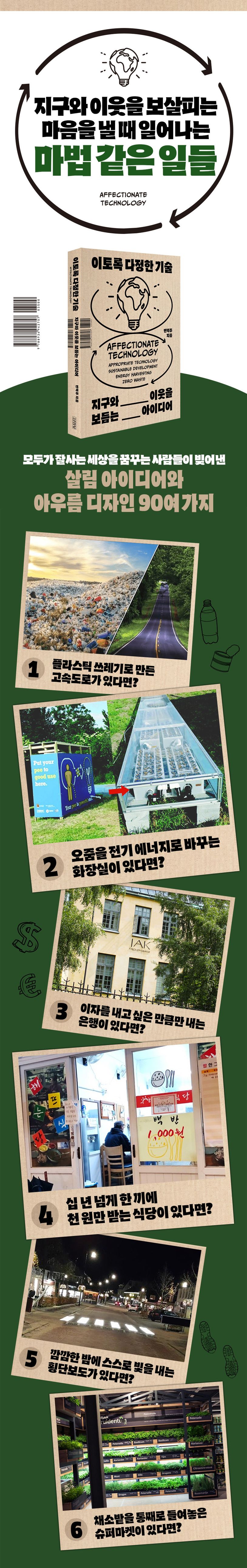 나만잘사는것이아니라모두가잘사는세상을꿈꾸는사람들이빚어낸,‘살림아이디어’와‘아우름디자인’90여가지.과학기술이하루가다르게발전하면서우리삶은어느때보다풍족해지고편리해졌다.그러나경제적·정치적격차로그혜택에서소외된이웃들이여전히존재하며,넘쳐나는쓰레기와뿜어대는온실가스로지구는몸살을앓고있다.시장지상주의가놓치거나외면한것들을따뜻하게살피고보듬는일을업으로삼으며삶을일구는사람들이있다.이책에는그들이결고운마음으로빚은기술과아이디어로가득하다.독자들이소개된기술이나조직에관해보다자세한내용을접할수있도록동영상및홈페이지로연결되는QR코드를생생한컬러사진과함께수록했다.따뜻하고기발한기술의세계를만나보자.