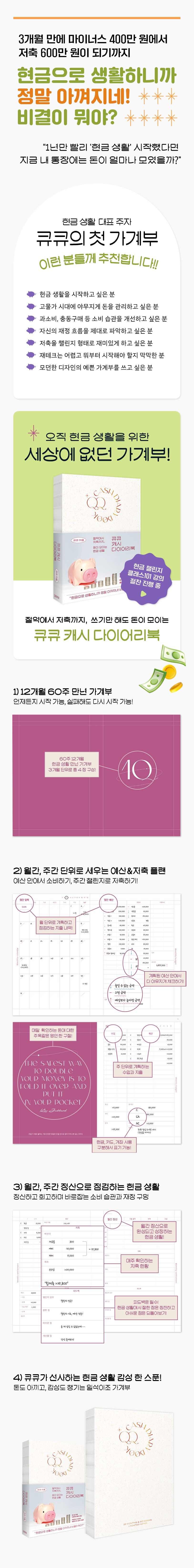 큐큐 캐시 다이어리북(누드사철제본) (절약에서 저축까지, 돈이 모이는 현금 생활)