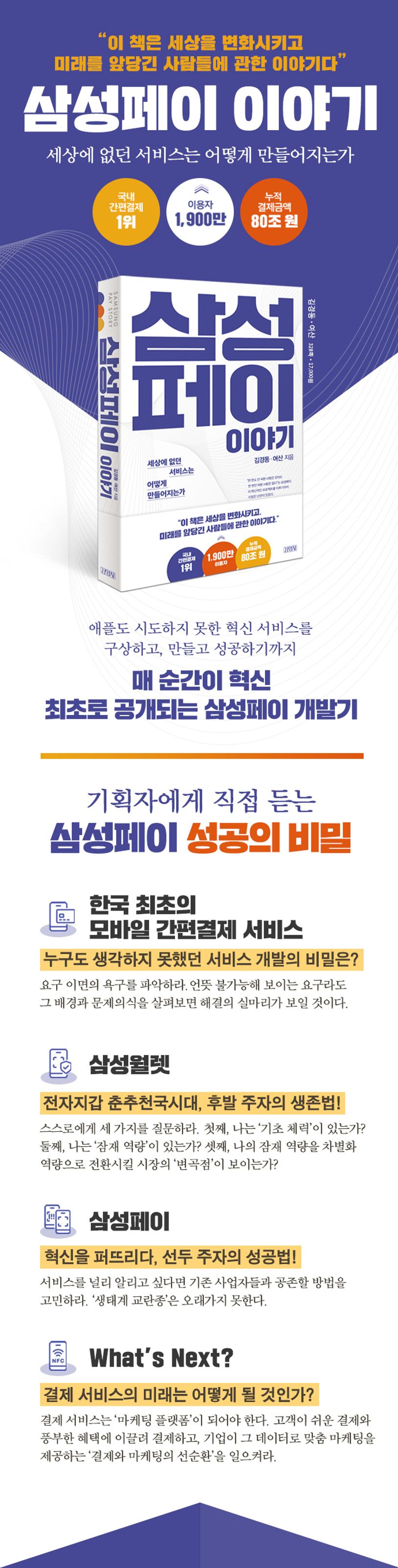 누적 결제금액 80조 원, 1,900만 이용자, 현금도 카드도 필요 없는 간편결제의 혁신을 이뤄낸 삼성페이. 우리가 무심코 쓸어올리는 화면 뒤에는 어떤 이야기가 숨어 있을까? 《삼성페이 이야기》는 삼성페이의 치열한 개발 과정에 관한 최초의 기록이다. 조금 다른 꿈을 꾼 사람들이 한데 모여 세상에 없던 서비스를 만들고 시장을 평정하기까지, 그 모든 과정이 기획자의 눈을 통해 숨가쁘게 펼쳐진다.