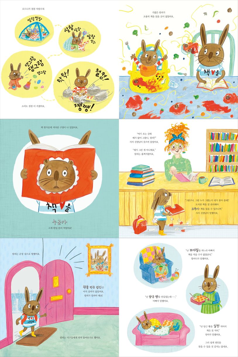 조용히 집중하면서 책 읽기를 좋아하는 랄피에게 동생이 태어나면서 문제가 생깁니다. 랄피는 시끄러운 집을 피해 조용하고 책이 많은 도서관에서 독서를 즐기지만, 누군가 랄피가 도서관에서 빌린 책을 먹어 버리는 사건이 일어납니다. 랄피가 세상에서 제일 좋아하는 책을 먹은 범인은 누구일까요?