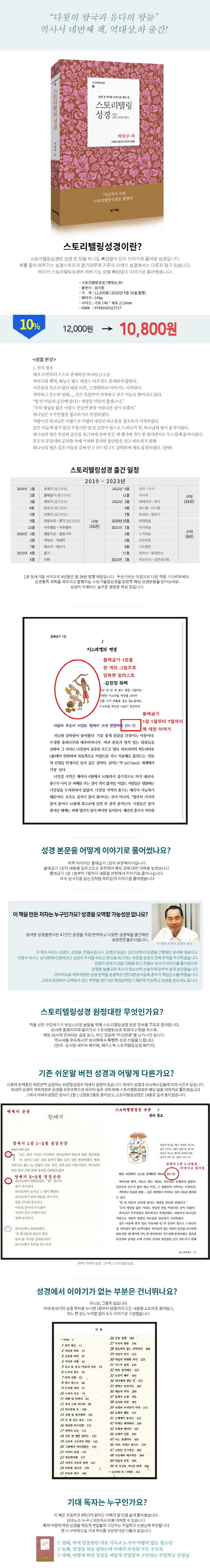스토리텔링성경은현재집필중인원고입니다.세계최초로성경전장을스토리로만들려고하고있지만,성경에는스토리로구성하기어려운분량들이있습니다.따라서출판사는큰계획을가지고진행을하지만,집필진의의도나출판사의사정에따라서분량,일정이조정될수있음을알려드립니다.
