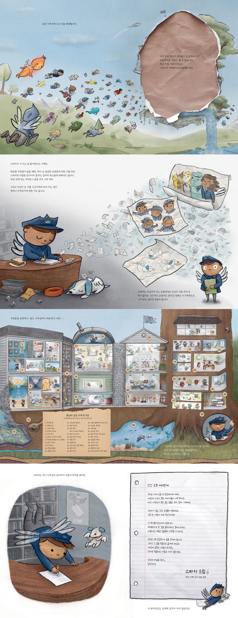 마음속에 숨겨 둔 상상을 꺼내어 세상과 나눌 용기를 건네는 그림책 『요원 모집! 상상 사무국』이 출간되었다. 글쓰기를 좋아하지만, 자신의 글을 누군가에게 보여 주는 것이 두려운 주인공 ‘스파키’가 편지를 써서 위기의 순간을 극복해 나가는 과정을 담았다. 상상을 그저 마음속에 간직해 두지 않고, 누군가와 나누고 행동으로 옮길 때 비로소 진짜 힘을 발휘한다는 사실을 유쾌하고 다정하게 전한다.