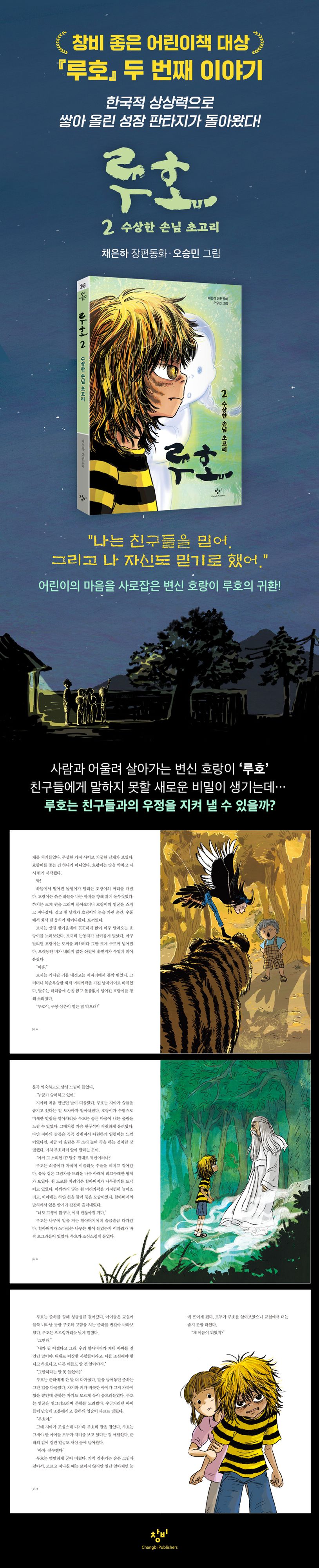 제26회 ‘창비 좋은 어린이책’ 원고 공모 대상을 수상하며 어린이의 마음을 사로잡은 한국형 판타지 성장동화 『루호』의 두 번째 이야기가 출간되었다. 『루호』는 “사람으로 변신한 호랑이가 우리 곁에 살고 있다면 어떤 모습일까?”라는 질문에서 탄생한 동화로, 호랑이와 인간의 갈등을 박진감 넘치게 그렸다. 후속작 『루호 2: 수상한 손님 초고리』는 변신 호랑이 루호와 인간 친구 지아가 마주한 오해와 갈등을 섬세하게 담아내며 서로를 이해하고 진정한 우정으로 거듭나는 길을 보여 준다. 호랑이에게 죽임을 당해 창귀가 된 아이, 초고리는 동화에서 보기 드문 신선한 등장인물로 작품에 긴장감과 깊이를 더한다. 현대적으로 재해석한 옛이야기 속에 어린이의 현실적 고민을 세밀하게 그려 내어, 읽는 재미와 따뜻한 감동이 어우러진다.