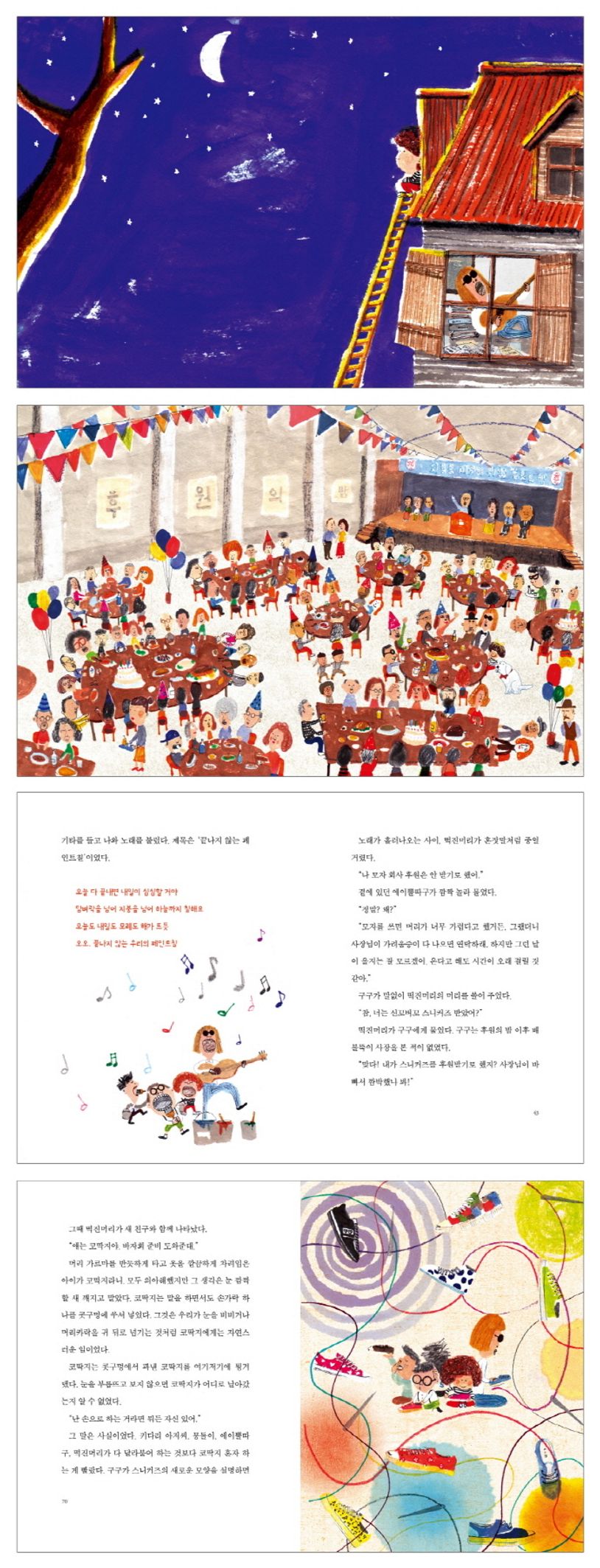 엄마 아빠를 잃었다고 해서 슬픔에 빠진 채 상황을 탓하거나 타인을 미워하는 대신 자신보다 외롭고 힘든 친구들을 위해 스니커즈로 바자회를 열 뿐 아니라, 스스로에게 '구구 스니커즈'라는 특별한 이름을 붙여주는 등 마음이 따뜻하고 상상력이 풍부한 구구의 신통방통 통쾌한 성공담을 담았습니다. 마냥 울고 싶은 아이들, 짜증이 치솟는 아이들의 마음을 따스하게 감싸안아줍니다. 특히 자신에게 닥친 아픈 상처를 마냥 두려워하기보다는 당당히 마주하여 구구만큼이나 용감하고 멋져지도록 응원을 보냅니다. 2011년 볼로냐 국제아동도서전 올해의 일러스트레이터에 뽑힌 그림작가 오정택의 앙증맞은 발랄한 그림을 함께 담아 구구의 짜릿한 모험에 생동감을 부여합니다.