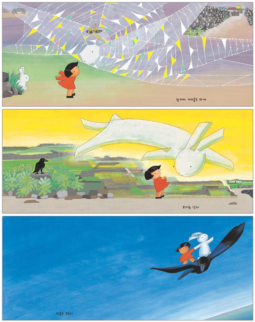 강렬하고 순박하며 현실적이고 환상적인 그림은 제주도 특유의 독특한 풍경을 그려낼 뿐 아니라, 엄마를 기다려본 적 있는 아이들의 마음을 따스하게 감싸안습니다.