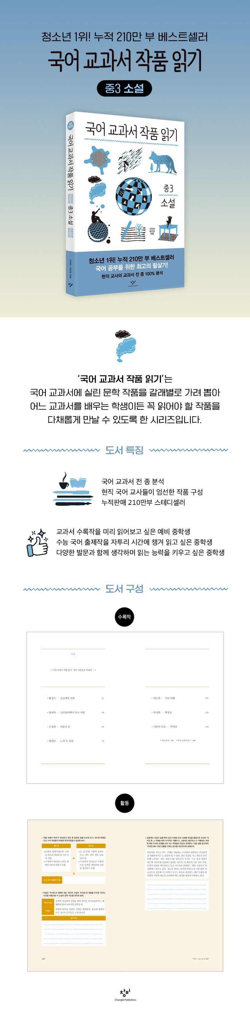 2010년 첫 선을 보인 이래 지금까지 200만 독자에게 큰 사랑을 받아 온 검증된 시리즈 ‘국어 교과서 작품 읽기’가 전면 개정판 중3 시리즈를 출간하며 완간된다. ‘국어 교과서 작품 읽기’는 이전까지 한 권이던 국정 국어 교과서에서 여러 종의 검정 국어 교과서로 바뀌면서, 국어 교과서에 실린 문학 작품을 갈래별로 가려 뽑아 어느 교과서를 배우는 학생이든 꼭 읽어야 할 작품을 다채롭게 만날 수 있도록 한 시리즈다. 초판 이후 2013년에 새로운 교육 과정에 맞추어 개정판을 냈으며, 이번에 다시 한번 개정된 교육 과정에 맞추어 2020학년도 중3 국어 교과서에 대비하는 전면 개정판을 출간한다. 중3 시리즈는 지난 개정판 수록작과 비교하여 90%나 바뀌어 대폭 달라졌으며, 황정은(중3 소설), 김하나(중3 수필) 등 새로운 경향의 작품들을 수록했다. 문학 작품 독해의 질을 높이고 국어 능력을 강조하는 교육 과정의 큰 변화에 발맞추어 창의 융합형 활동에 적절한 작품을 엄선했으며, 문학 작품을 인문, 과학 영역과 접목해 통합적으로 읽고 생각하기를 권장하는 교육 과정에 따라 작품을 읽은 뒤에 내용을 확인하거나 자신의 생각을 자유롭게 표현해 보는 활동을 마련했다. ‘국어 교과서 작품 읽기’는 달라진 교과서를 위한 완벽한 대비일 뿐 아니라 문학이라는 든든한 벗을 사귀는 특별한 경험이 되어 줄 것이다.