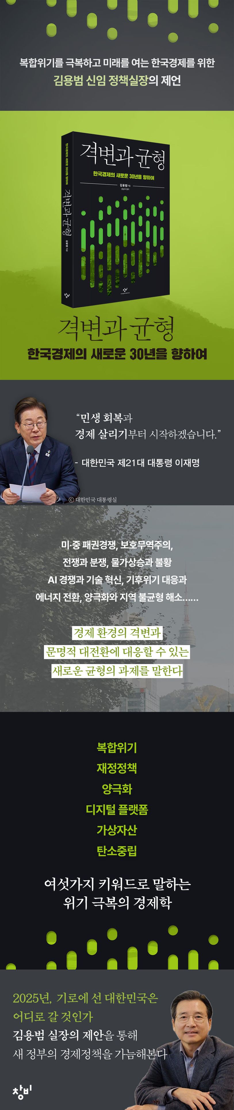 지난 34년간 한국경제의 최전선을 지켜온 김용범 전 기획재정부 차관의 신간 『격변과 균형: 한국경제의 새로운 30년을 향하여』(권순우 정리)는 이 위기의 순간에서 출발한다. 현장에서 위기를 직접 목격하고 관리한 김 전 차관은 당시의 생생한 상황을 전하며 독자의 눈길을 이끈다. 저자는 팬데믹 이후 우리가 겪고 있는 이 위기가 단순히 감염병 방역에서 파생된 일시적 혼란이 아니라 오늘날 세계경제와 한국경제가 맞닥뜨린 경제·금융의 위기와 보건위기가 결합된 ‘복합위기’라고 진단한다. 대규모 양적완화로 대표되는 2008년 글로벌 금융위기 대응책의 충격이 아직 해소되지 않은 상황에서 팬데믹은 세계경제의 수요와 공급 모두를 직접적으로 타격하며 더 큰 위기를 촉발했고, 이것이 구조적 위기로 고착화될 가능성마저 있다는 것이다. 비교적 방역에 성공적이었다고 평가받는 한국도 결코 예외가 될 수 없다.