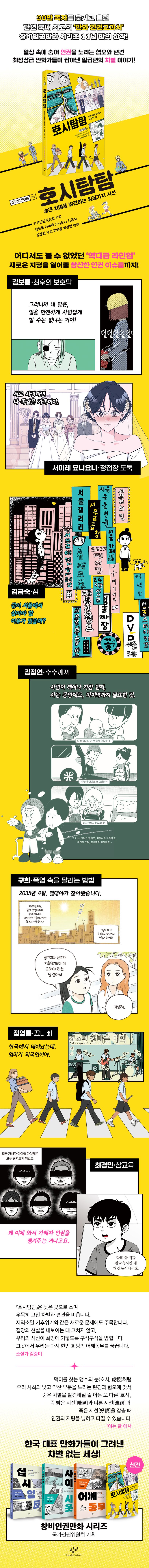 먹이를 찾는 맹수의 눈(호시, 虎視)처럼 우리 사회의 낮고 약한 부분을 노리는 편견과 혐오에 맞서 숨은 차별을 발견해내는 또 다른 ‘호시’, 즉 밝은 시선[晧視]과 너른 시선[浩視]과 좋은 시선[好視]을 길러줄 인권만화 시리즈의 반가운 귀환이다.