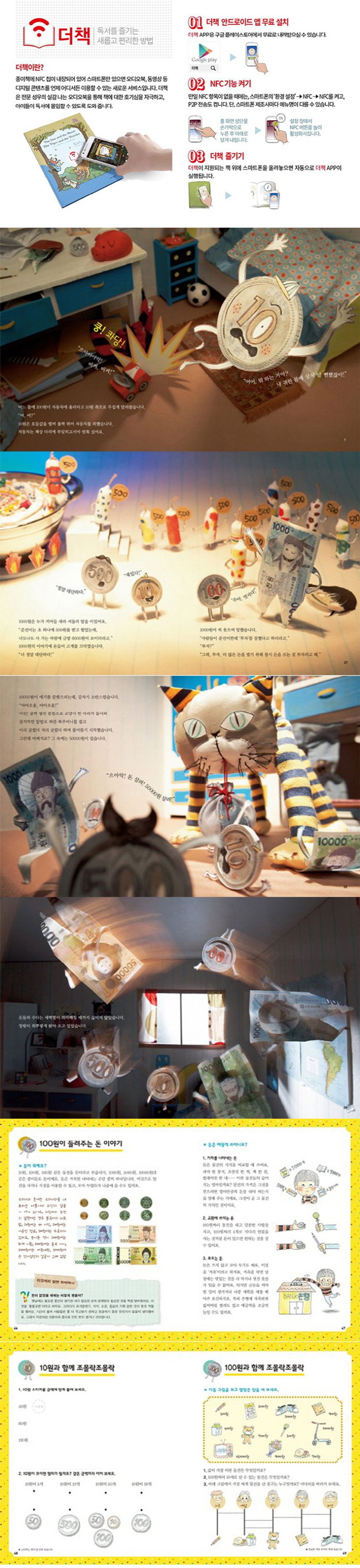 돈 하나하나에 표정과 움직임을 더해 '살아 움직이는 돈'을 만들어냈고, 다양한 카메라 각도와 수차례에 걸친 카메라 효과 실험을 통해 만들어진 장면으로 캐릭터의 역동적인 움직임과 환상적인 공간을 잘 표현했다. 책 뒤에는 이야기에 나온 여러 단위의 돈과 함께 돈의 개념과 가치, 돈을 바르게 쓰는 법 등을 알아보는 꼭지를 마련했다. 또한 부연 설명을 담은 정보 페이지와 다양한 활동을 통해서는 아이들이 아는 재미와 노는 재미를 함께 누릴 수 있도록 돕는다.