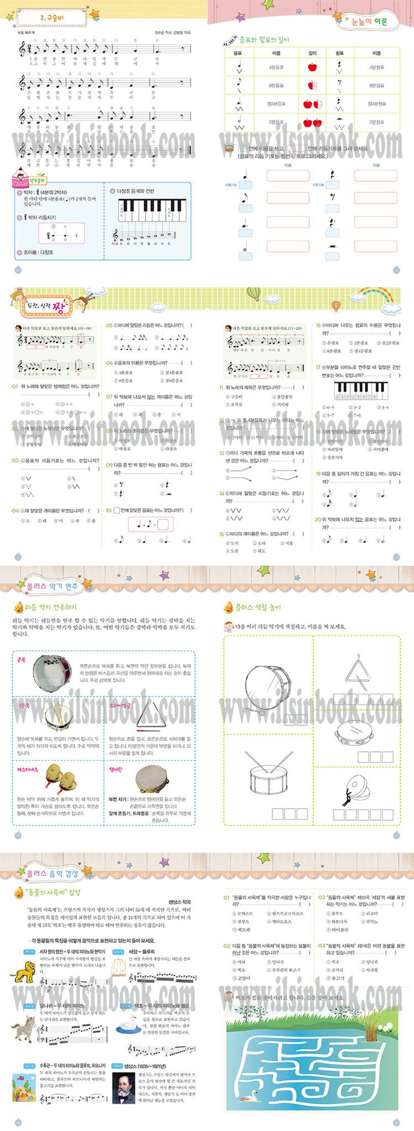 ▶ 초등학교 교과서에 수록된 곡을 중심으로 한 음악이론과 평가문제입니다.