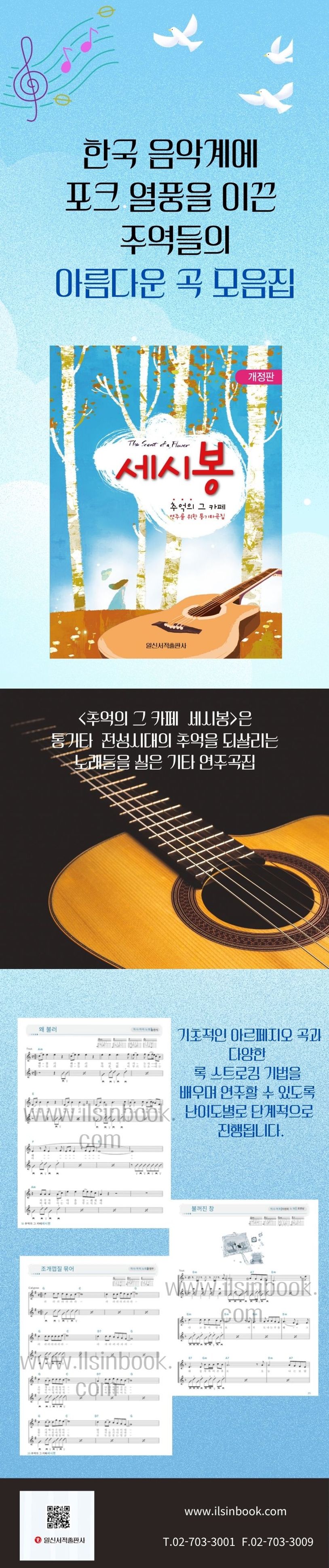 ㆍ 시대를 초월한 세시봉의 추억의 인기곡 중에서도 가장 인기 있는 가요와 최신 팝송을 선곡하여 통기타 연주에 최적화된 편곡으로 담아내었습니다.