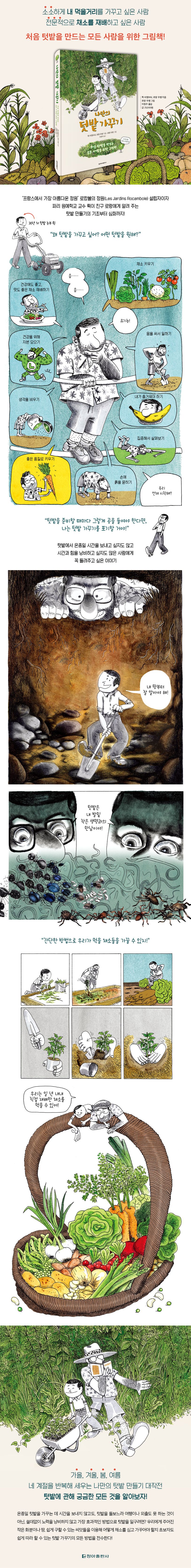 이렇게 베테랑 채소 재배자인 뤽이 텃밭 재배가 궁금한 친구 로랑에게 텃밭의 모든 것에 관해 알려 준다. 텃밭이란 무엇이고, 어떻게 시작해야 할까? 그는 거추장스럽게 일을 벌이지 않고도 생활 한쪽에서 자연스럽게 식물과 함께하고, 징그럽다고만 생각해 온 수많은 ‘작은’ 생명을 어떻게 바라봐야 하는지, 궁극적으로는 내가 먹을 채소를 직접 재배할 때 어떻게 과학적이고 효율적으로 임할 수 있는지 이야기해 준다.