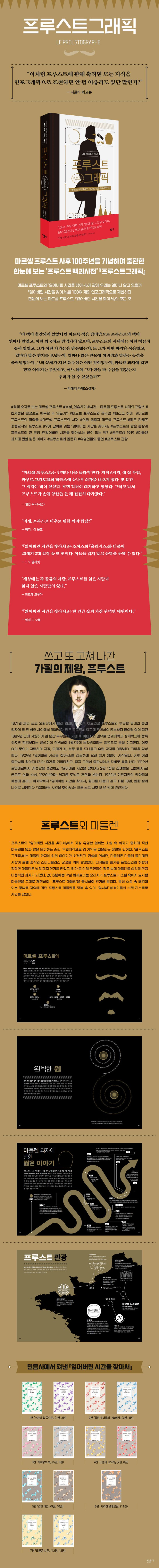 100여 가지 인포그래픽으로 마르셀 프루스트와 『잃어버린 시간을 찾아서』의 모든 것을 한눈에 읽고 ‘볼’ 수 있는 『프루스트그래픽』이 민음사에서 출간되었다. 프루스트 사후 100주년을 기념하여 출간된 책으로, 리드미컬한 서체와 금색과 먹과 백이 조화로운 그래픽 이미지로 연출한 ‘프루스트 백과사전’이다. 시각적으로도 몹시 흥미롭지만, 주목할 점은 이 책이 지닌 자료와 정보의 방대함을 압축하는 간결함이다. 『프루스트그래픽』은 문학적 탐구, 그리고 인문학에 속하든 속하지 않든 프루스트와 『잃어버린 시간을 찾아서』에 관한 모든 지식을 망라하며, 그 다채로운 지식이 인포그래픽으로 구현되어 책 속에 담겨 있다. 자연인 프루스트와 그의 기념비적인 작품은 100여 년 이상 무수히 많은 언어와 다양한 매체에 걸쳐 수많은 관련 작품들을 탄생시켰다. 우리는 마르셀 프루스트와 『잃어버린 시간을 찾아서』에 관한 모든 것을 알고 싶지만, 어디서부터 시작해야 할지, 어디서 정보를 찾아야 할지 알지 못한다. 이 책은 그러한 궁금증을 가진 독자들을 위한 프루스트 입문서로서 그 역할을 톡톡히 해 줄 것이다.