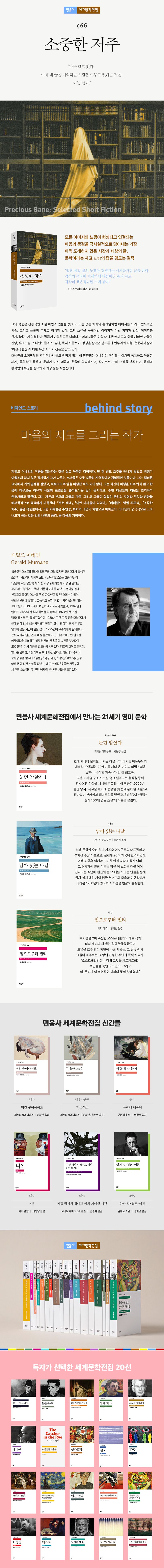 오스트레일리아 작가 중 가장 강력한 노벨 문학상 후보로 꼽히는 숨은 거장 제럴드 머네인의 소설선 『소중한 저주』가 민음사 세계문학전집으로 출간되었다. 평생 오스트레일리아를 떠난 적이 없고, 출생지인 빅토리아주 바깥도 거의 벗어난 적이 없다는 이 은자(隱者)와도 같은 작가는 그럼에도 자신이 태어나고 살아온 지역을 배경으로 하는 현미경적인 관찰, 문학에 관한 수도사와도 같은 엄숙한 탐구, 인간 의식과 마음에 관한 정교한 기술(記述)을 바탕으로 보편성을 획득하여 전 세계 독자들의 사랑을 받게 된 거장이다.
