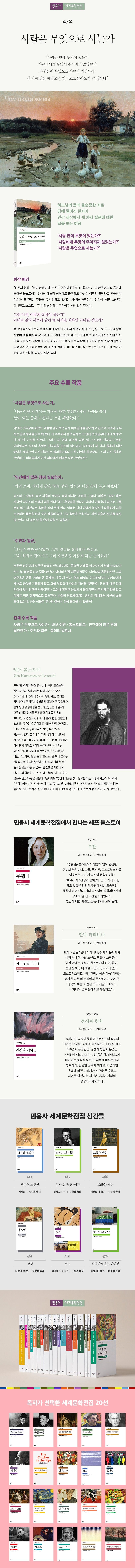 톨스토이는 작가적 전성기에 접어든 중년 이후 자신이 많은 것을 이루어 냈지만 여전히 무언가 두려워하고 있다는 사실을 깨닫는데, 그것은 바로 ‘죽음’이었다. 조실부모한 톨스토이가 어려서부터 막연하게 두려워하던 ‘죽음’이 그에게 점점 가까이 다가오고 있었던 것이다. 그럼 이제, 어떻게 살아야 하는가? 이대로 삶의 허무에 깔린 채 다가올 최후만 기다릴 것인가? 톨스토이는 지독한 우울과 불안의 끝에서 새로운 삶의 의미, 삶의 윤리 그리고 삶을 사랑해야 할 이유를 찾아낸다.