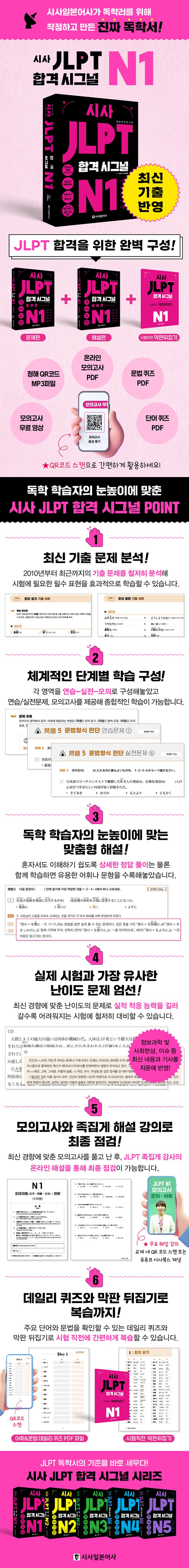 시사 JLPT 합격시그널 N1 (무료 MP3, 모의고사 2회분, 모의고사 무료 해설 강의 | 데일리 어휘 퀴즈, 데일리 문법 퀴즈, 막판 뒤집기)