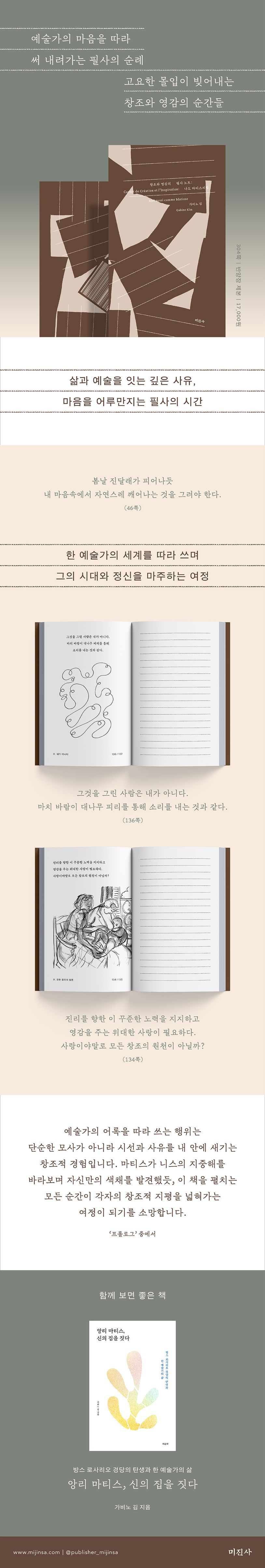 현대 미술의 거장 앙리 마티스의 예술 철학을 따라 쓰며, 디지털 시대에 잃어버린 창조적 사유와 깊은 몰입을 되찾을 수 있도록 구성한 교양 필사서