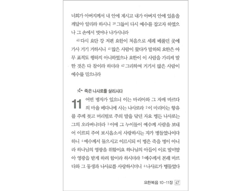 [요한복음]은단순하면서도심오한말씀으로,예수님당시의사람들과오늘날의독자들모두의필요와문제들을언급하면서,예수님과그분의메시지를전해주고있습니다.[요한복음]은빛과어두움을대조시켜서매우중요한의미를보여줍니다.하나님의빛이어두움에비쳤습니다(1:9).어두움은그빛을소멸시킬수없습니다(1:5).어두움에다니는사람은길을잃습니다(12:35).그러나예수님을믿는사람들은빛가운데다닙니다(12:46).사랑의하나님은모든사람들에게생명의빛을주는하나님입니다.[요한복음]은예수님을세상의구주로선포합니다(4:42).예수님은온인류를비추는빛입니다(1:9).그분을통해서하나님은세상모든사람들을향한사랑을나타내셨습니다(3:16).모든사람은하나님의뜻안에있으며,그분이주시는영생에응하도록초청을받았습니다(6:68)[요한복음]의메시지는아마전체성경중에서가장잘알려진구절이기도한“하나님이세상을이처럼사랑하사…”(3:16)라는말씀속에간결하고분명하게나타나있습니다.이것은예수그리스도가선포한좋은소식의핵심입니다.하나님의사랑은모든사람을향한것입니다.