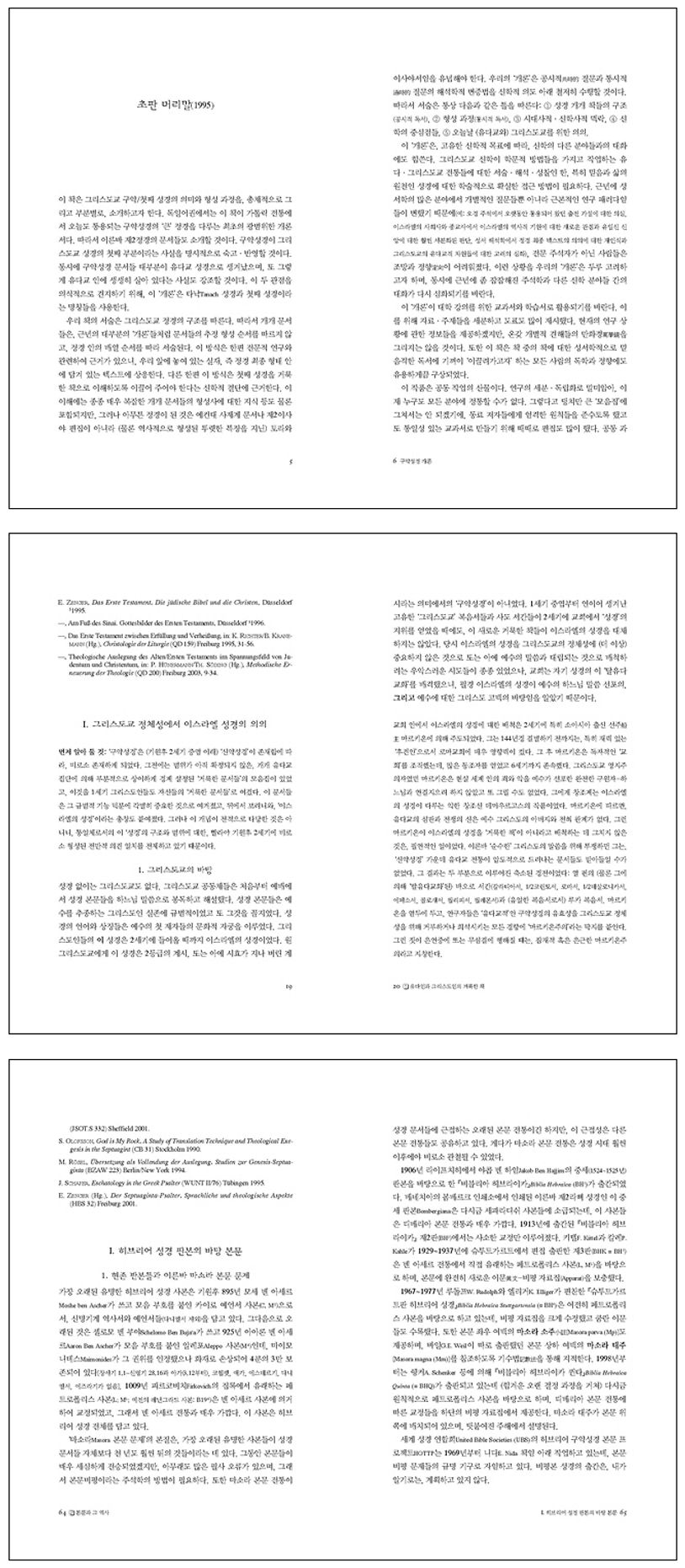 구약성경은오늘날까지도그리스도교전통의바탕이되는‘첫째성경’이다.『구약성경개론』은구약성경의‘큰정경’을다루는독일어권최초의광범위한개론서다.개별문서들의추정형성시기가아닌,그리스도교정경의구조에따라서술하며구약성경이그리스도교성경의첫째부분이라는점과유다교성경으로부터비롯되었다는점을강조한다.5판을거듭하며최근의연구결과를철저히반영했고,특히‘토라/오경’과‘역사서’부분을크게확충했다.신학학술서로는이례적으로3만부이상이판매되었다.구약성경없이는그리스도교도없다!-그리스도교의바탕,구약성경의역사를들여다본다-그리스도교의바탕구약성경없이는그리스도교도없다.그리스도교공동체들은처음부터예배에서구약성경본문들을하느님의말씀으로봉독하고해설했다.구약성경본문들은예수를따르는그리스도인들에게규범이었고,또한그들의실존을형성했다.구약성경의언어와상징은예수의첫제자들에게문화적모태였다.2세기에들어설때까지도그리스도인들의구약성경은이스라엘의성경이었다.그렇지만상대적으로중요치않은계시나시효가만료되어버린계시라는의미로‘구약’성경인것은아니었다.1세기중반부터연이어출현한,그리스도교고유의복음서들과사도서간들이2세기에이르러‘성경’의지위에오를때에도이‘새로운성경’이이스라엘의성경을대체하지는않았다.이스라엘의성경을그리스도교의정체성과관련해대수롭지않은것이나,예수의말씀에완전히대립하는것으로배척하려는기도도있었지만초기교회는성경의‘탈유다교화’를거부했다.이스라엘의성경이‘예수가선포한하느님의말씀’과‘예수그리스도에대한신앙고백’의바탕이라는사실을인지했기때문이다.독일어권최초의광범위한개론서『구약성경개론』은그리스도교의‘첫째성경’인구약성경의‘큰정경’을다루는독일어권최초의광범위한개론서다.분야별로정통한저자를두어전문성을확보하되,엄격한원칙과일관된편집으로통일성을잃지않았다.구약성경이그리스도교성경의첫째부분이라는점을명확히인식하며,구약성경의문서들대부분이유다교성경에서비롯되었다는점을강조했다.따라서이두관점을의식적으로견지하고자구약성경에대해‘타낙성경’과‘첫째성경’이라는명칭을사용했다.근래출간된구약성경개론서들은대체로개별문서들의추정형성시기를따르지만,『구약성경개론』은그리스도교정경의구조를따라서술했다.우리눈앞에있는실재,즉정경의최종형태에담긴텍스트에상응해야한다는학문적연구와첫째성경을‘거룩한책’으로이해하도록인도해야한다는신학적결단에근거한선택이다.또한신학적관점에서공시적(共時的)주제와통시적(通時的)주제의해석학적변증법을철저히수행했다.따라서다음과같은틀로써탐색했다:①성경개별문서들의구조(공시적독서),②형성과정(통시적독서),③시대사적·신학사적맥락,④신학의중심점들,⑤오늘날(유다교와)그리스도교를위한의의.대화와이해를위해최근에는성서학의여러분야에서개별적주제뿐아니라,근본적연구패러다임이변화한탓에전문주석자가아닌이들은조망과정향(定向)이어려워졌다.그리스도교신학이유다·그리스도교전통을학문적방법으로서술·해석·성찰하는학문인이상,믿음의원천인성경에대한확실한접근방법이절실하다.이러한의미에서저자들은『구약성경개론』이신학의여러분야들간의대화에도움이되기를기대한다.또한대학강의를위한학습서로활용되기를바라며여러주제를더욱세분하고많은도표를제시했다.최근의연구상황을반영했지만,온갖이견들을어지러이나열하지는않았다.그렇지만무엇보다『구약성경개론』이‘책중의책’을더깊이알고자하는모든이들에게길잡이가되기를기대한다.