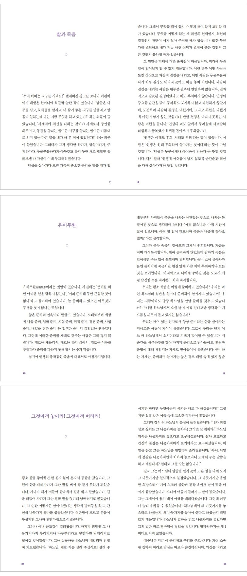 이 책에서 독자들은 한 사제의 묵상과 성찰을 마주하며, ‘강론 아닌 강론’, 곧 어렵지 않게 받아들일 수 있되 깊이를 잃지 않은 강론을 접할 것이다. 이 짧은 글들은 일상의 사소한 일에서도 그리스도를 따르려 하는 이들에게 작은 위로와 기쁨이 될 것이다.