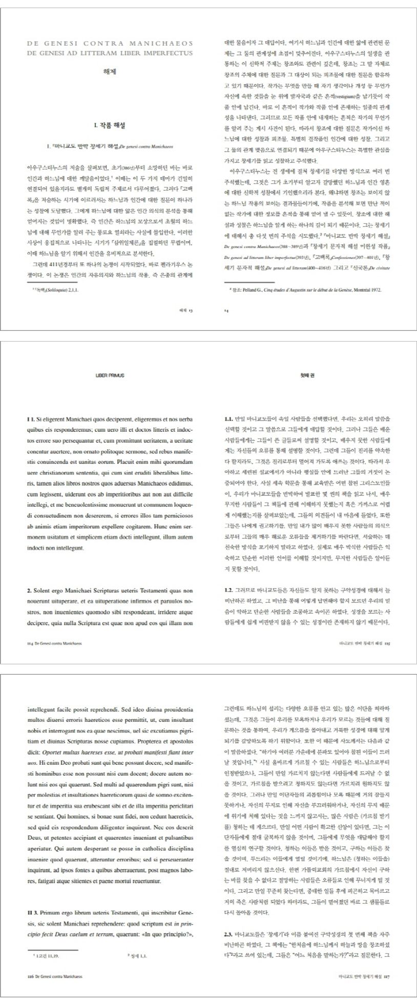 아우구스티누스의 일생을 관통하는 주제는 인간과 하느님에 대한 깨달음이었다. 이 신학적 주제는 창조와도 관련이 깊어 아우구스티누스는 전 생애에 걸쳐 창세기를 다양한 방식으로 주석했는데, 그 가운데 두 권인 『마니교도 반박 창세기 해설』과 『창세기 문자적 해설 미완성 작품』을 한데 묶어 소개한다.