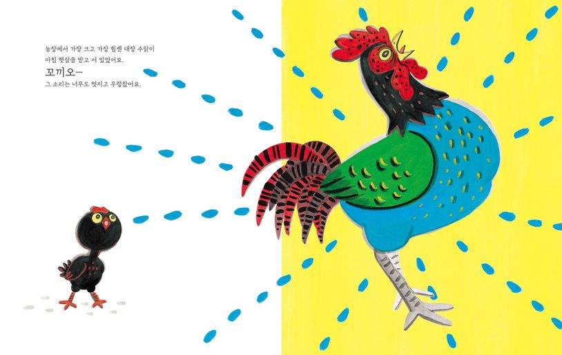 꼬끼오- 대장 수탉의 멋지고 우렁찬 소리, 꽁지도 할 수 있을까요? 키가 작아도, 어린 암컷 병아리여도 뭐든지 할 수 있어요!