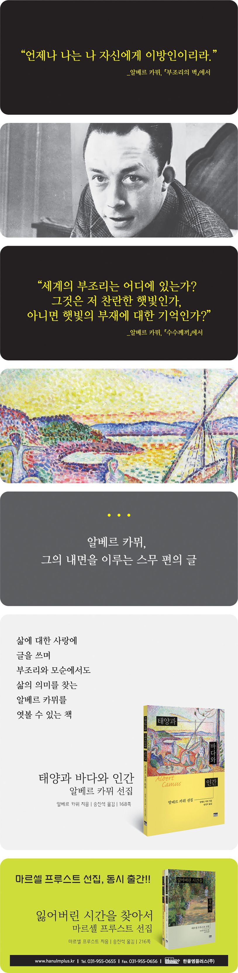 이 책은 카뮈가 쓴 에세이 중에서 작가로서의 깊은 고뇌와 예술에 대한 성찰을 담은 핵심 텍스트를 가려 뽑아 번역하고 엮은 것이다. 가장 카뮈다운 글이라 할 수 있는 스무 편의 글들은 태양빛 가득한 바다를 배경으로 선 인간, 카뮈를 보여준다. 그가 느끼는 태양빛은 지극한 가난까지도 상쇄하는 빛이며, 그가 헤엄치는 바다는 존재를 껴안는 바다이다. 삶에 대한 사랑에서 자극을 받아 글을 쓰는 카뮈, 부조리와 모순에서도 삶의 의미를 찾는 카뮈, 알베르 카뮈의 정신과 마음의 바탕을 엿볼 수 있는 책이다.