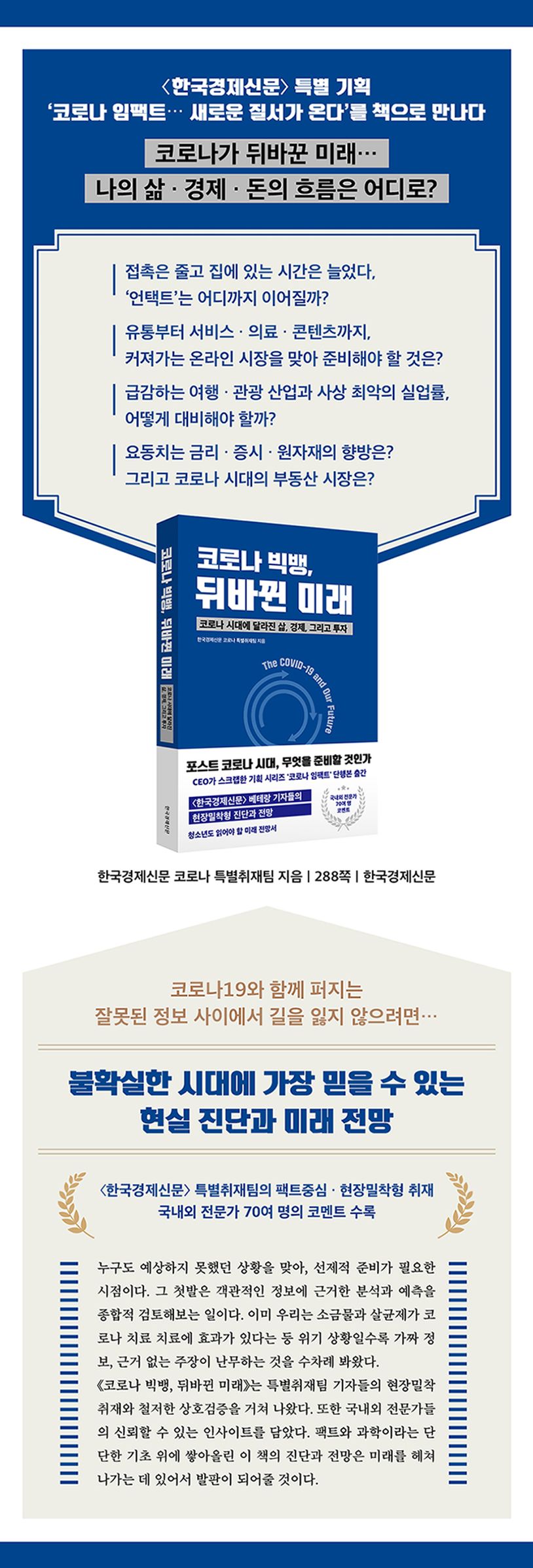 코로나 시대는 불확실성의 시대다. 이럴 때일수록 정확하고 신뢰할 수 있는 정보가 필요하다. 확실한 팩트 위에 쌓아올린, 진단과 전망은 미래를 헤쳐 나가기 위한 발판이 되어줄 것이다.
