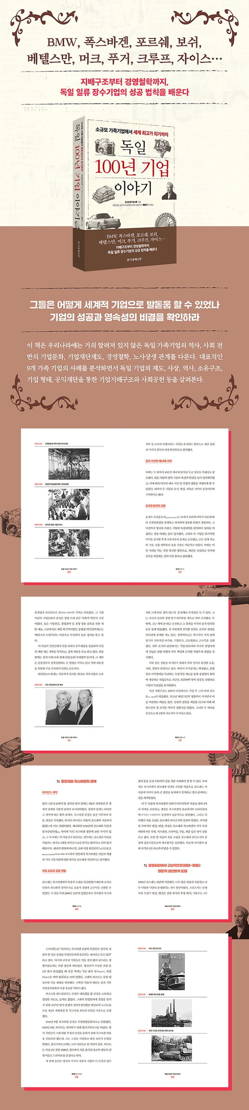 독일에는 가족 단위의 사업장으로 출발하여 현재 전 세계를 호령하는 브랜드가 많다. 대표적인 산업이 자동차로 BMW, 폭스바겐, 포르쉐 역시 소규모 가족기업에서 세계 최고 기업으로 성장했다. 자동차는 1900년대에 들어서서야 하나의 산업으로 자리 잡았으니 역사가 그리 오래지 않지만, 이 책에서 소개하는 가족기업 중에는 500년이 넘는 역사를 자랑하는 곳도 있다. 무역업, 광산업, 대부업 등으로 막대한 부를 쌓은 푸거가 그 주인공으로, 창립연도가 1512년이다. 그 밖에 철강 기업 크루프는 1811년, 광학기기 기업 자이스는 1816년, 산업기기 전문 보쉬는 1886년, 글로벌 미디어 기업 베텔스만은 1835년, 제약 기업 머크는 1827년에 창립됐다. 모두 2세기가 넘도록 지속되는 기업이다.