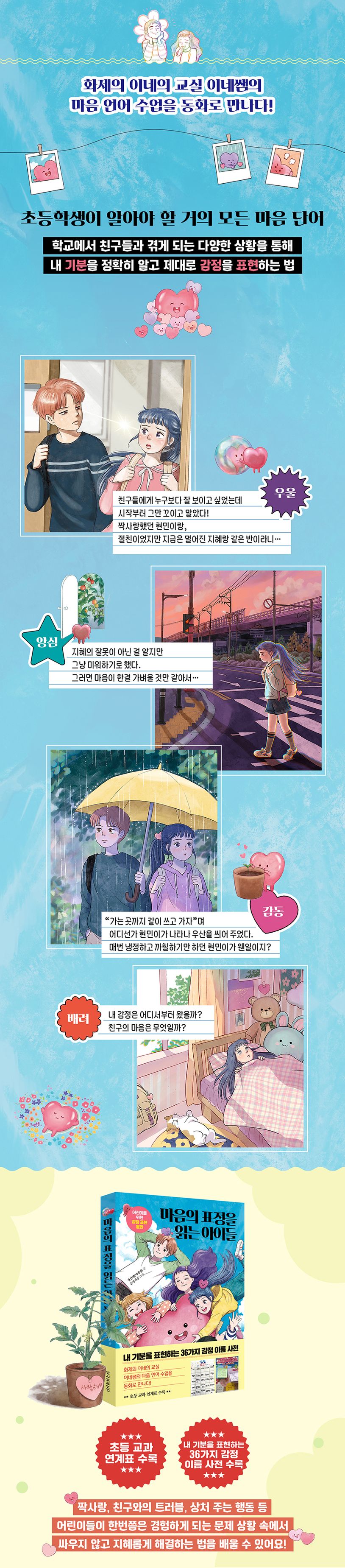 마음 언어 수업으로 유명한 이네쌤이 초등학생이 꼭 알아야 할 감정을 제대로 이해하고 표현하는 방법에 대한 동화를 선보인다. 이 책은 화제의 어린이 도서 《세금 내는 아이들》 《수상한 수학 감옥 아이들》의 〈아이들〉 시리즈 여섯 번째 책으로 자신과 친구의 마음을 알아채고, 감정을 제대로 표현하는 일에 어려움을 겪는 요즘 아이들에게 학교 및 일상생활 속의 에피소드들을 통해서 기분을 제대로 이해하고 표현하는 법을 알려주는 창작 동화이다.