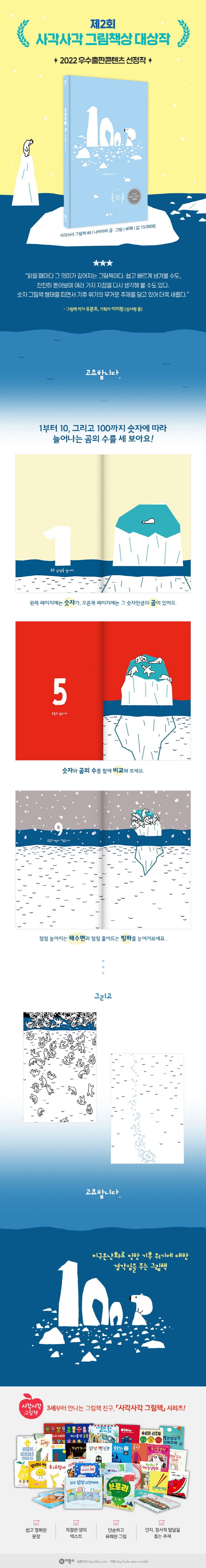 제2회 사각사각 그림책상 대상삭 『100곰』이 ㈜비룡소에서 출간되었다. 사각사각 그림책상은 비룡소 출판사가 2021년 새롭게 시작한 그림책상으로, 사과를 한입 가득 베어 물었을 때 나는 소리 ‘사각사각’에서 느껴지는 신선하고 상큼한 이미지처럼, 신인 작가를 발굴하고 주목하여 그림책 시장에 새로운 바람을 불러일으키고자 하는 바람을 담아 제정되었다. 만 3~4세 아이의 눈높이로 다양한 주제와 재미를 주는 그림책을 발굴하고 있다. 제2회 수상작 『100곰』은 지구온난화로 인한 기후 위기의 무거운 주제를 숫자 그림책의 형태로 아이들 눈높이에 맞춰 풀어 낸 그림책이다. 재미있고 숫자 놀이를 하듯 아이들이 쉽고 빠르게 넘겨 볼 수도 있고, 부모와 함께 찬찬히 뜯어보며 여러 주제적인 지점을 다시 생각해 볼 수 있다.
