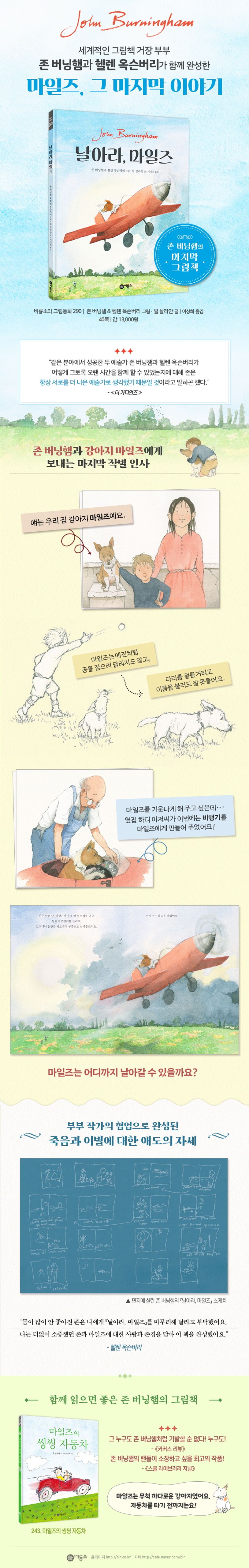 『날아라, 마일즈』는 지난 2019년 1월 세상을 떠난 존 버닝햄의 마지막 작품이다. 『마일즈의 씽씽 자동차』의 주인공 강아지 마일즈에 대한 두 번째 이야기를 구상하던 중 몸이 많이 안 좋아진 존 버닝햄은 이 이야기를 마무리해 달라고 부탁했다고 한다. 그 뜻을 이어받아, 부인 헬렌 옥슨버리가 그림을 그리고 친구 빌 살라만이 글을 써 『날아라, 마일즈』를 완성했다.