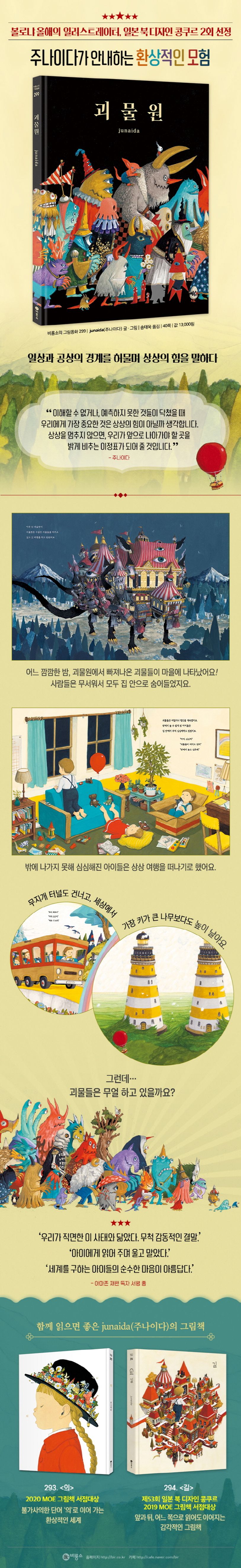 어느 날, 마을에 괴물들이 나타나 집 안에서 옴짝달싹하지 못하게 된 아이들이 상상 여행을 떠나며 벌어지는 일을 환상적으로 그려 낸 그림책 『괴물원』이 ㈜비룡소에서 출간되었다. 볼로냐 올해의 일러스트레이터, 일본 북 디자인 콩쿠르에서 수상한 주나이다는 광고·책 일러스트 등으로 활약하던 일러스트레이터로, 그림책 『의』과 『길』을 출간하며 일본에서 가장 주목받는 그림책 작가로 부상했다. 『괴물원』은 주나이다의 세 번째 그림책으로, 『길』에 이어 제54회 일본 북 디자인 콩쿠르에서 다시 한번 수상했다. 수상이 증명하듯 그림책에 새롭고 독특한 미적 시도를 계속하며 ‘주나이다 월드’를 구축해 온 주나이다의 신작 『괴물원』은 전작들에 비해 서사가 돋보이는 책이다. 특히 코로나19 팬데믹 상황과 맞아 떨어지는 이야기로 감동을 선사해 '우리가 직면한 이 사태와 닮았다. 무척 감동적인 결말.’, '아이에게 읽어 주며 울고 말았다.', '세계를 구하는 아이들의 순수한 마음이 아름답다.'(아마존 재팬) 등의 뜨거운 반응을 모았다.