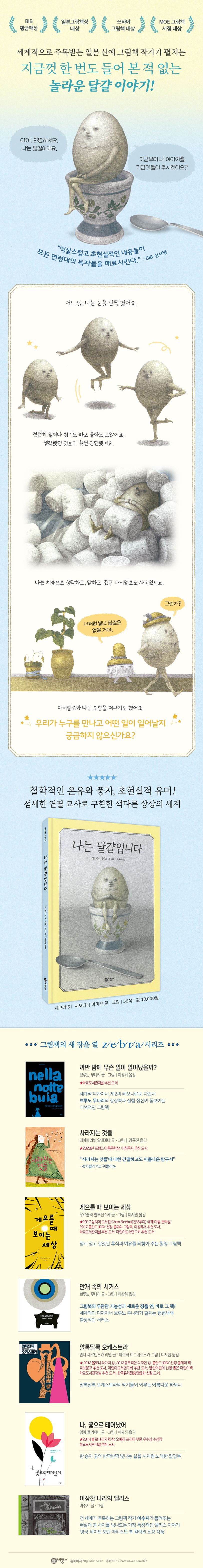 BIB 황금패상, 일본그림책상 등을 수상하며, 일본뿐 아니라 세계에서 인정받아 인기 작가로 떠오른 시오타니 마미코의 기묘한 이야기 『나는 달걀입니다』가 ㈜비룡소에서 출간되었다. 이 책은 누워만 있던 달걀이 처음으로 눈을 뜨고, 생각하고, 말하고, 친구를 사귀며 벌어지는 유쾌한 소동을 그렸다. 초현실적인 유머와 철학적인 은유, 색다른 이야기 전개로 그동안 없었던 새로운 그림책의 장을 연 책인 만큼, 참신한 아이디어와 감각적인 디자인이 어우러진 그림책을 선보이는 비룡소의 「지브라」 시리즈를 통해 소개된다.