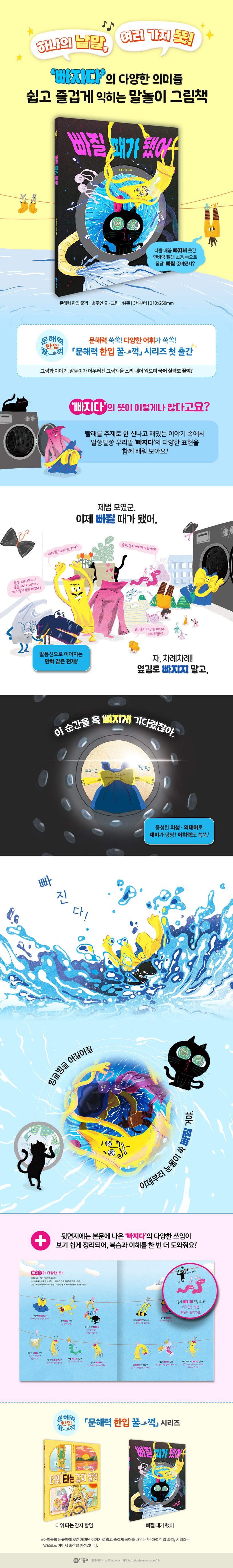 그림과 이야기, 말놀이가 한데 어우러진 그림책을 소리 내어 읽으며 어휘력과 문해력을 자연스럽게 키우도록 기획된 시리즈 「문해력 한입 꿀꺽」의 두 번째 그림책 『빠질 때가 됐어』가 ㈜비룡소에서 출간되었다. 이 시리즈는 그림책이 주는 즐거움을 그대로 살리면서, 듣기, 말하기, 읽기, 쓰기, 문법, 문학적 요소들을 고루 담아 초등 국어 교과 과정 대비에 맞춰 구성되었다. 아이들이 글과 그림을 보며 우리말과 글을 쉽고 즐겁게 배우도록 돕는 데 초점을 맞추었다. 우리말은 같은 낱말로도 수많은 쓰임새가 있어 상황에 따라 정확하게 쓰는 게 쉽지가 않다. 대신 익숙해지면, 언어의 세계가 폭넓게 확장되는 만큼 이번 시리즈는 아이들에게 우리말의 재미를 확실하게 보여 주도록 기획되었다. 바로 문해력의 기초가 되는 단어의 여러 쓰임새를 재미있게 알려 준다. ①그림만 보고 장면을 유추하는 감각 ② 글과 그림을 맞춰 의미를 확인하는 감각 ③글만으로 문맥을 파악하는 감각까지, 이러한 단계를 거치다 보면 자연스레 문해력도 한층 더 단단해질 것이다. 이번에 출간된 『빠질 때가 됐어』는 ‘빠지다’라는 한 가지 낱말로 ‘물에 빠지다, 사랑에 빠지다, 옆길로 빠지다, 배꼽 빠지게 웃기다’ 등 다양한 표현을 재치 있게 알려 주는 말놀이 그림책이다. 아이는 장면마다 ‘빠지다’를 스스로 찾아 뜻을 짚어 보며 어휘와 문해력의 기초를 다진다.
