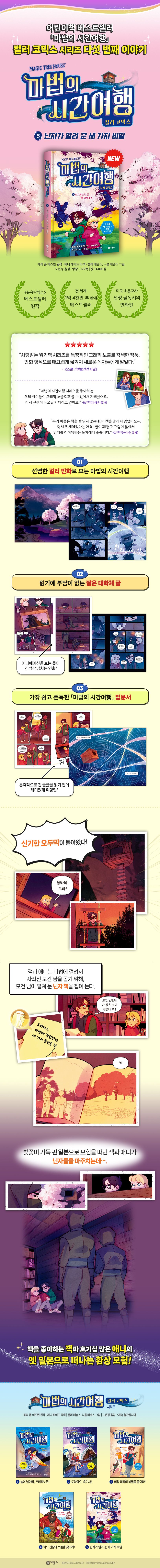 세계적인 베스트셀러 「마법의 시간여행」 시리즈의 만화판 「마법의 시간여행 컬러 코믹스」 다섯 번째 책이 ㈜비룡소에서 출간되었다. 「마법의 시간여행 Magic Tree House」 시리즈는 1992년 미국에서 처음 출간된 이래 30년간 39개 언어로 번역 출간되어 전 세계 1억 4천만 부, 국내 550만 부 판매되며 어린이들의 가장 친근한 모험 친구이자 책 읽기 재미를 알려 주는 독서 친구로 자리 잡았다. 동화 형식의 어린이 논픽션 분야를 개척해 내며 전 세계 아이들을 책의 마법에 빠져 들게 한 지식 교양 어드벤처 시리즈가 원작 출간 30주년을 맞아 컬러 그래픽 노블이라는 새로운 형식으로 새롭게 국내 독자들에게 다가간다.