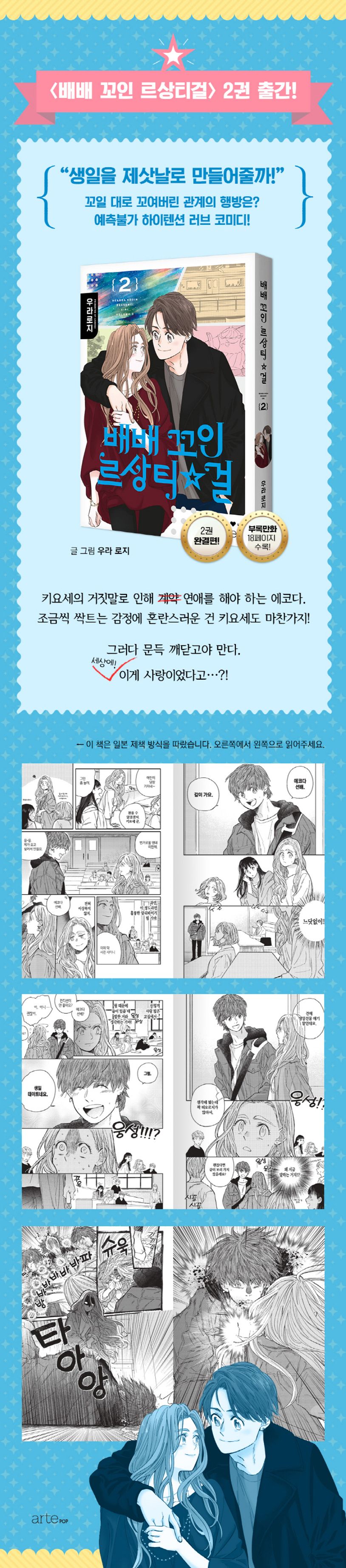 예측불가 하이텐션 러브 코미디 〈배배 꼬인 르상티걸〉 1권에 이어 2권이 출간됐다. 남자 주인공(키요세)과 여자 주인공(에코다)이 서로를 이해하고, 서로가 마음의 상처를 치유해주는 스토리가 액션 활극(?)처럼 펼쳐진다.