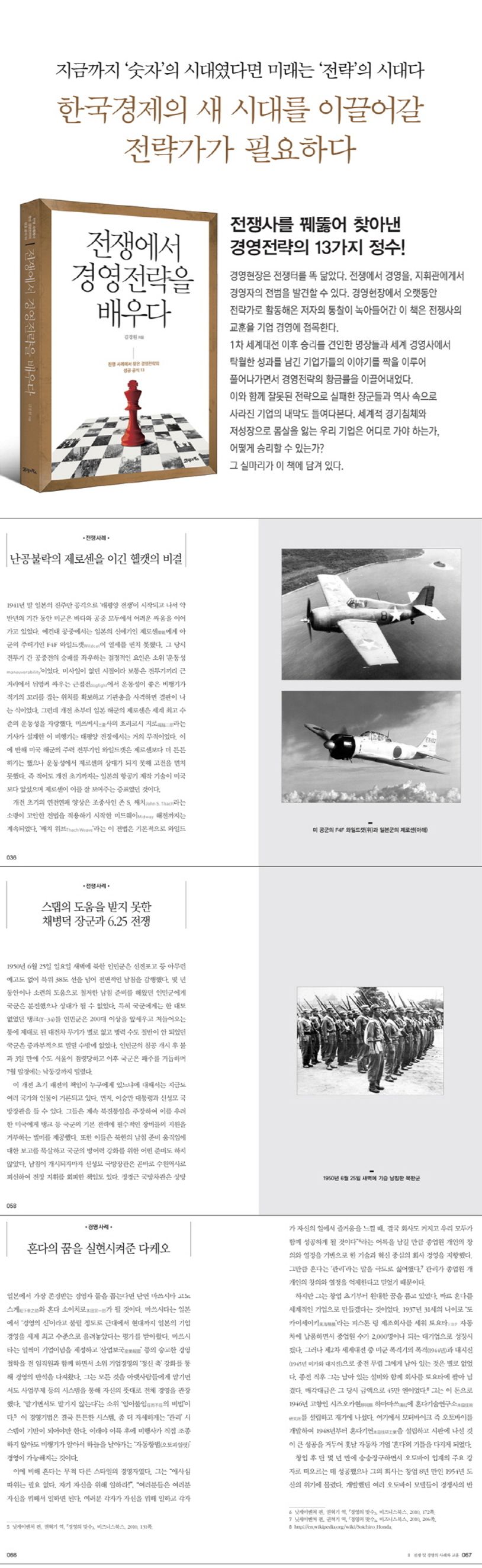 전략은 본래 전쟁에서 이기고자 하는 군사학의 지혜지만, 오늘날 전쟁터와 같은 시장에서 살아남기 위해서는 이러한 전략의 지혜가 필수적이다. 『전쟁에서 경영전략을 배우다』는 전쟁과 기업 간의 경쟁의 역사를 통찰력 있게 살펴보며 세계 전쟁사와 기업 경영사를 관통하는 전략의 13가지 정수를 담았다. 기업 현장에서 전략가로 활동해온 저자의 경험과 통찰력을 바탕으로, 전략의 교훈을 생동감 있는 사례를 통해 풀어나가며 한국 기업들이 반드시 알아야 할 전략 수립과 실행 방법론을 도출한다.
