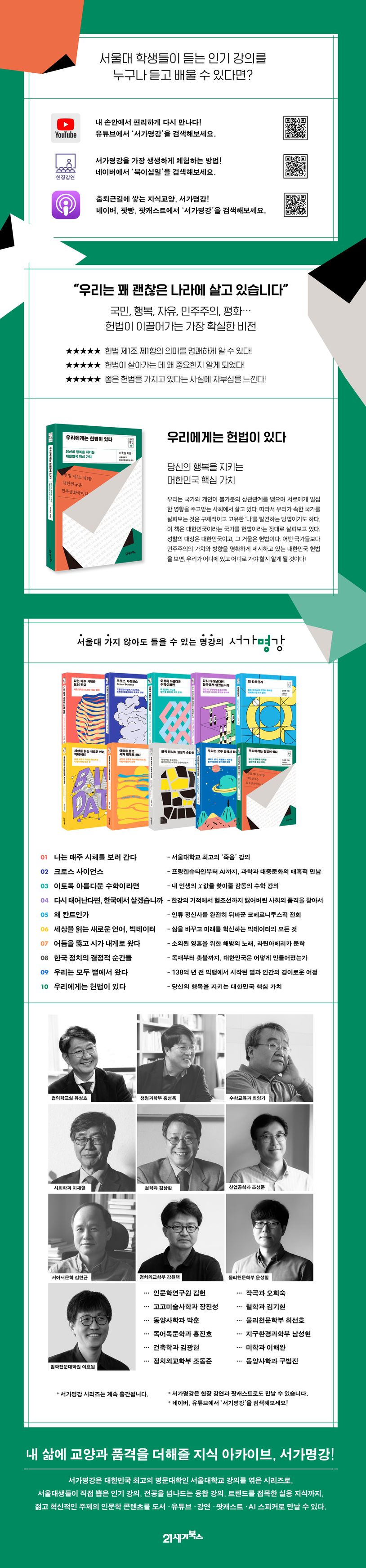 대한민국 최고의 명품 강의를 책으로 만난다! 현직 서울대 교수진의 강의를 엄선한 ‘서가명강(서울대 가지 않아도 들을 수 있는 명강의)’ 시리즈의 열 번째 책이 출간됐다. 역사, 철학, 과학, 의학, 예술 등 각 분야 최고의 서울대 교수진들의 명강의를 책으로 옮긴 서가명강 시리즈는 독자들에게 지식의 확장과 배움의 기쁨을 선사하고 있다.