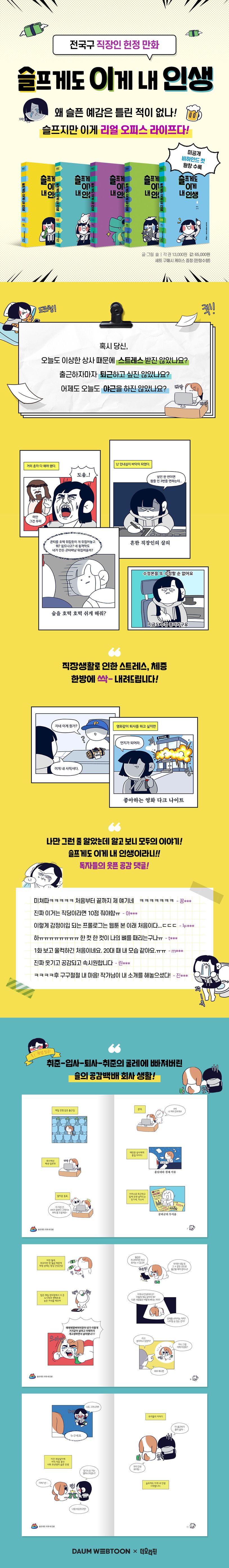 첫 화부터 “내 얘기인 줄 알았다” “하이퍼 리얼리즘” “직장인 사찰인가” 등 격한 공감을 표하는 댓글 세례를 받은 화제의 만화. 직장인들 사이에서 입소문을 타고 다음 웹툰리그에서 정식 연재작으로 입성해, 인기작으로 등극한 SEUL(슬) 작가의 《슬프게도 이게 내 인생》이 더오리진에서 단행본(전 5권)으로 출간되었다.