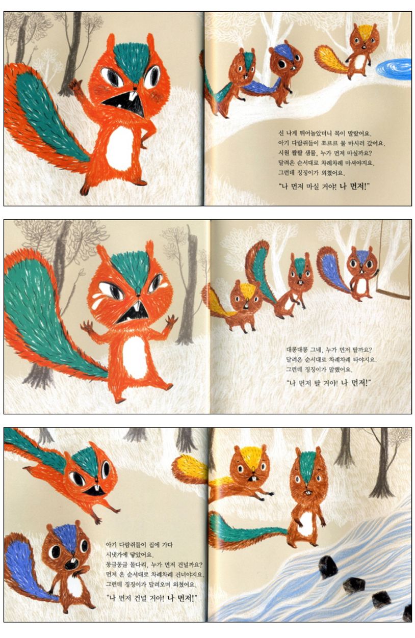 제3권에서는 차례를 지키기 싫어하는 아기 다람쥐 '징징이'의 이야기를 담고 있습니다. 아기 다람쥐 4마리가 숲 속에 놀러갔어요. 왕눈이가 대롱대롱 그네를 보았지요. "애들아, 우리 그네 타자." 아기 다람쥐들은 신이 나서 쪼르르 달려갔어요. 달려온 순서대로 차례를 지켜 그네를 타려고 했지요. 그런데 징징이가 "나 먼저 탈 거야!"라고 말했는데……. 양장본.