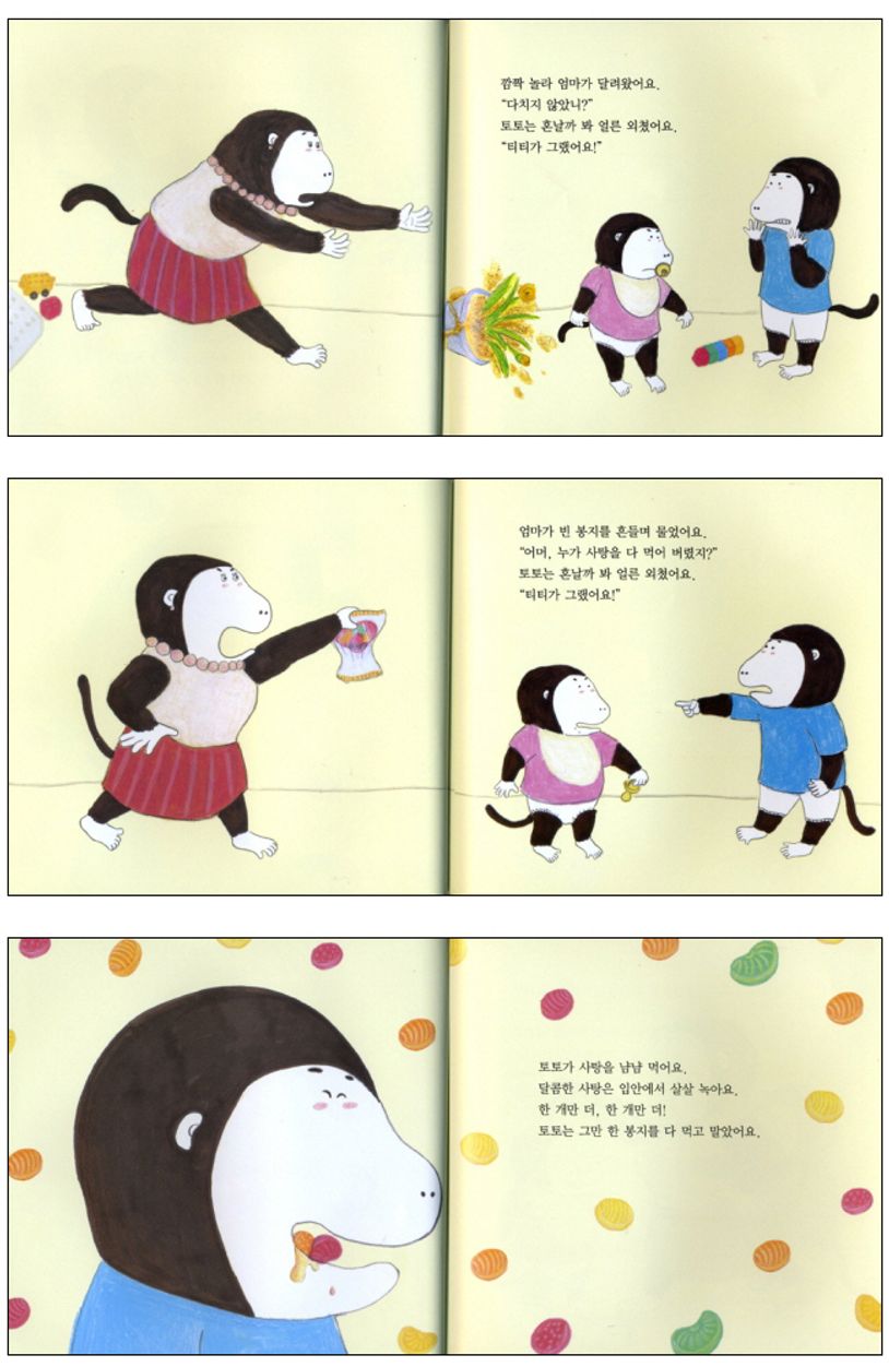제4권에서는 엄마에게 혼날까 봐 무서워 거짓말을 하는 '토토'의 이야기를 담고 있습니다. 토토가 동생 티티랑 블록을 가지고 놀다가 티격태격 다투었어요. 토토는 블록을 들고 도망가다 화분을 깨고 말았어요. 깜짝 놀라 어맘가 달려왔어요. 그런데 토토는 혼날까 봐 얼른 "티티가 그랬어요!"라고 외쳤어요. 그러자 가슴이 콩당콩당 뛰더니 몸이 쏙 줄어드는 것 같았는데……. 양장본.