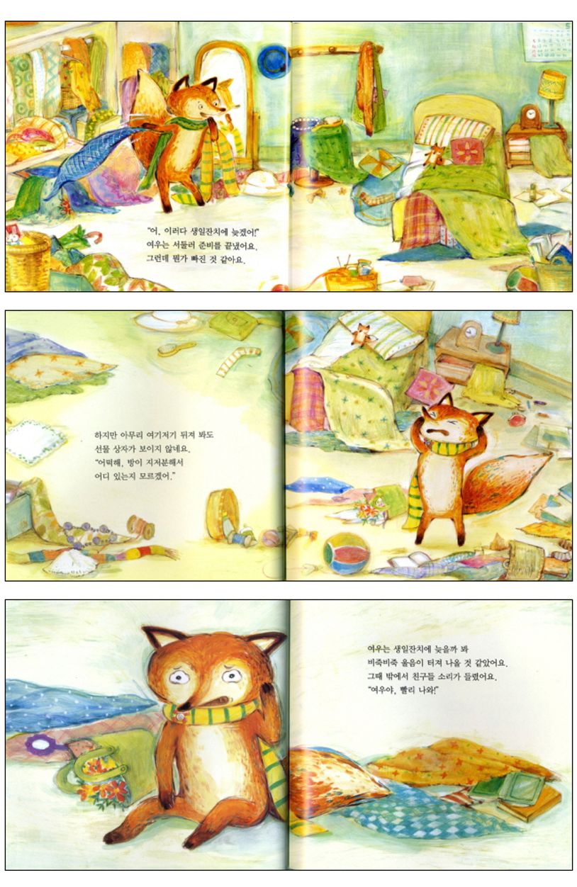 제5권에서는 방을 정리하지 않아 오소리에게 줄 선물 상자를 못 찾게 된 여우의 이야기를 담고 있습니다. 여우는 숲 속에서 가장 유명한 멋쟁이예요. 그런데 방을 정리하는 것은 무척 싫어하지요. 오늘은 오소리의 생일이에요. 여우는 오소리에게 줄 선물을 준비해놓았지요. 그런데 방이 어질러져 있어 어디 있는지 찾을 수 없었는데……. 양장본.