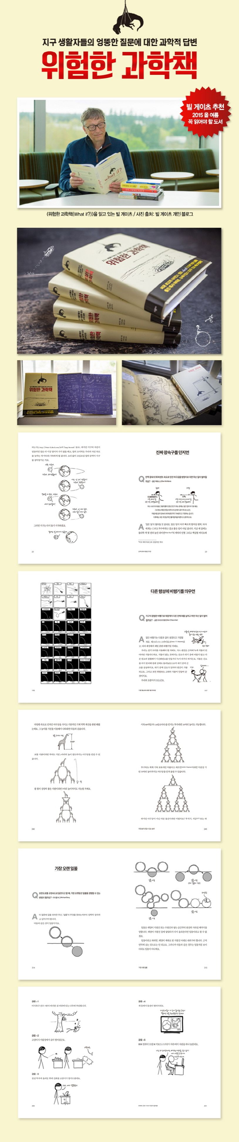 『위험한 과학책』은 랜들 먼로가 운영하는 사이언스 웹툰 xkcd에 올라오는 황당하고 엉뚱한 질문과 랜들의 흥미로운 과학적 답변을 모았다. 대학에서 물리학을 전공하고 미국항공우주국에서 로봇 공학자로 일했던 저자의 답변은 상당수 위험하다. 체르노빌 사태 때의 몇 천 배가 넘는 방사선을 배출하는 핵폭탄 낙진이 떨어지기도 하며 급속한 면역 체계 붕괴로 며칠 내에 사망하기도 한다는 식이다. 위험하지만 재미있고 흥미로우며 특유의 유머와 풍자, ‘막대 모양 캐릭터’를 활용해 랜들 먼로만의 웹툰을 완성하고 있다.
