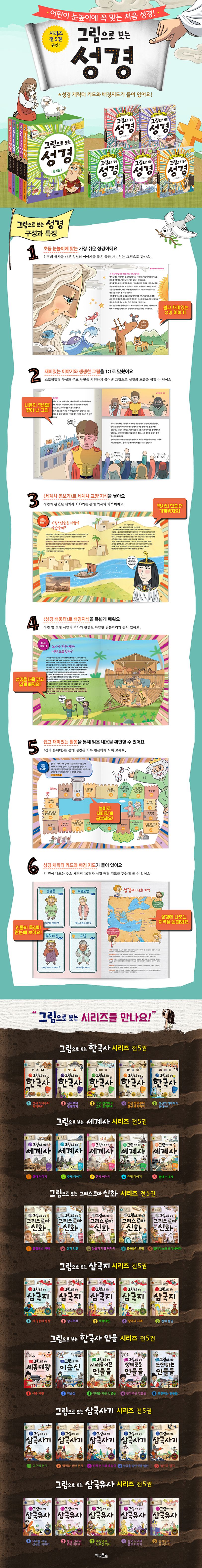 아담과 하와, 에덴동산, 천국과 지옥, 십자가 등 살아가면서 누구나 한 번쯤 만나는 이야기가 바로 〈성경〉이에요. 〈성경〉은 인류의 역사와 함께해 온 가장 오래된 베스트셀러이지요. 〈성경〉에는 세상이 처음 시작된 이야기를 비롯한 인류의 기원과 역사, 문화, 철학 등이 오롯이 담겨 있어요. 하지만 수많은 등장인물과 얽히고설킨 고대 서양의 역사는 초등학생이 이해하기 힘들어요. 〈그림으로 보는 성경〉은 생동감 넘치는 입말체로 〈성경〉에 나오는 주요 사건과 인물 이야기를 재미있게 풀어냈어요. 삶의 지혜와 용기, 사랑을 전해 주는 〈성경〉을 어린이의 눈높이에 맞춰 생생한 그림으로 담아낸 〈그림으로 보는 성경〉을 통해 세상을 보는 눈이 훨씬 넓어질 거예요.